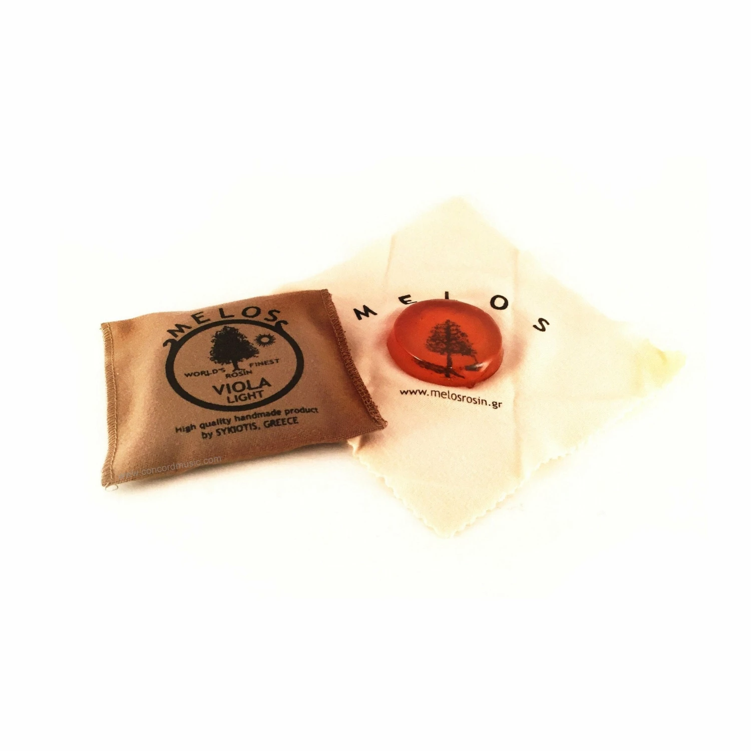 High quality rosin hand-crafted from Greek pine-tree resin; round cake on square cloth