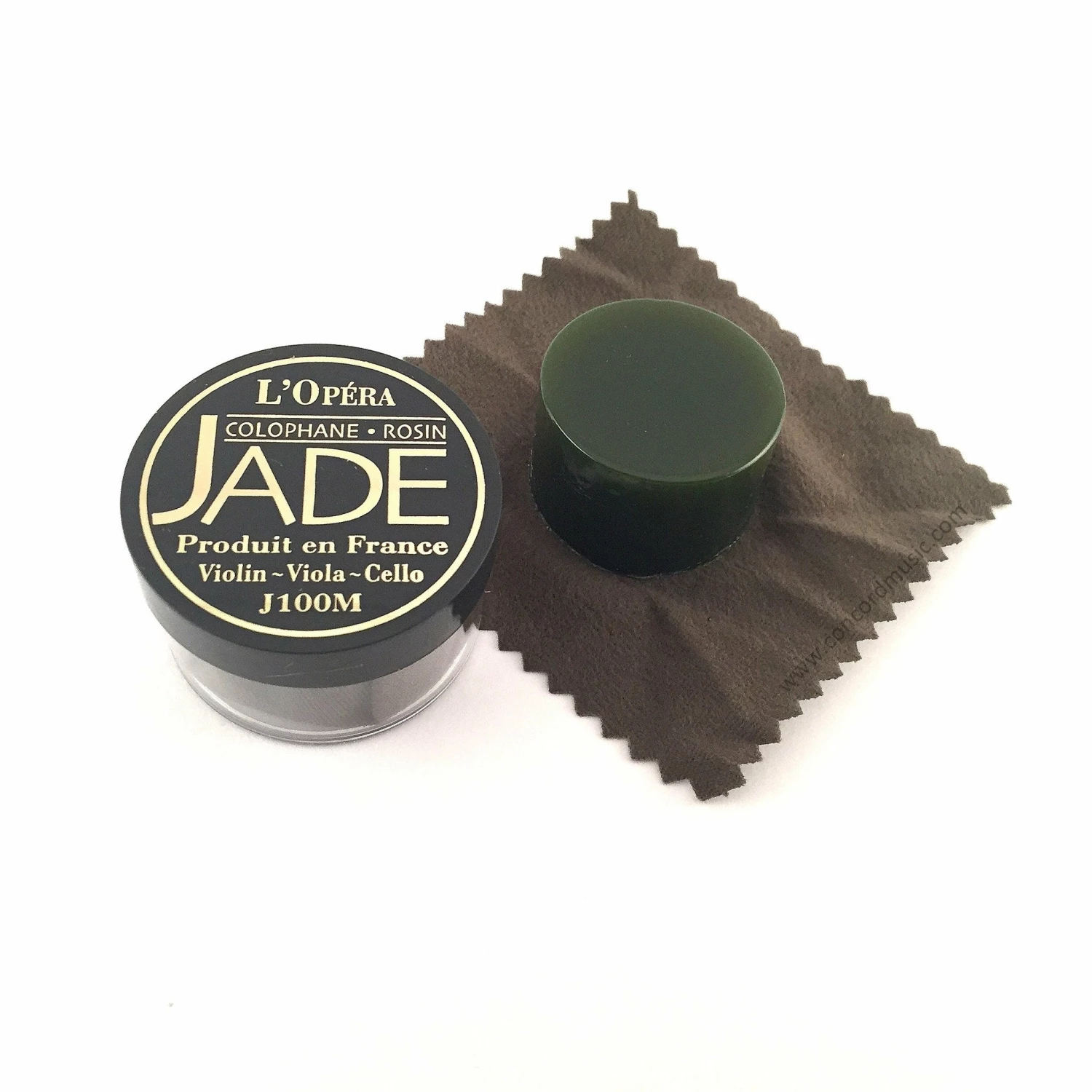 Jade Rosin is a soft rosin that provides a strong grip with little dust. Popular with violinists, violists & cellists, this all-purpose rosin is known for producing a smooth tone & features a distinctive green color. Made in France. Item J100M